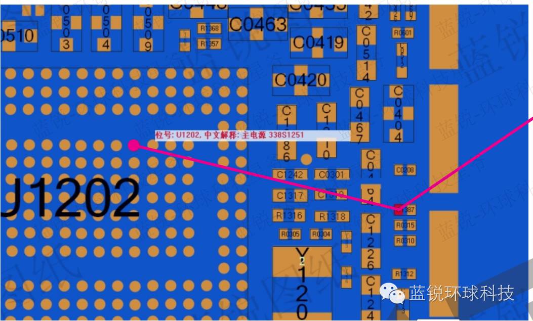 3.测量U1202主电源的L7角出现无阻值可以判断CPU虚焊或者断线,重置CPU或者飞线解决故障